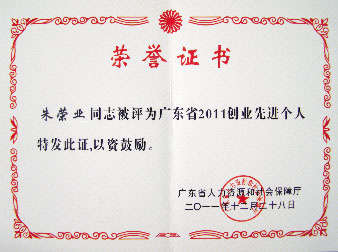 我集團執(zhí)行總裁朱榮業(yè)先生等廣東省內(nèi)100名創(chuàng)業(yè)先進個人榮獲“廣東省2011創(chuàng)業(yè)先進個人”榮譽稱號。