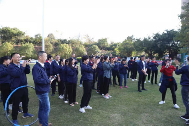 隨后,團建游戲正式開始,全體人員分成五組,每組現場選隊長、取隊名及口號,并將隊名、口號分別寫在卡紙上。游戲有一圈到底、有獎競答、多人兩人三足、電臀抖甩、愛的魔力轉圈圈、指東往西、多人你畫我猜等,這些游戲既鍛煉了體能,還活躍了思維。每一個環節獲勝隊伍都能獲得獎品及獎勵分,累計分數最高的隊伍還能獲得一等獎大禮包一份。
